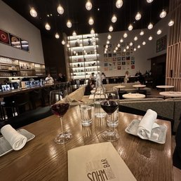 We stopped by for a bottle of wine before a show last month when our omakase dinner let us enough time for a few more drinks. We didn't have a reservation but got lucky - there were two seats at the bar when we arrived! The service was great, and the bartender talked us through some of the skin contact/natural options they had by the bottle and recommended one in particular. I'm glad we trusted her recommendation, because the wine was excellent, special. The space is cool - high ceilings, but dark and moody. Loved the ambiance. I'd happily return, drink another recommended bottle, and maybe even nosh on their cheese boards (which looked beautiful and delicious) before another show. A great place to drink some wine if you want a great, interesting selection (including natural, skin contact options).